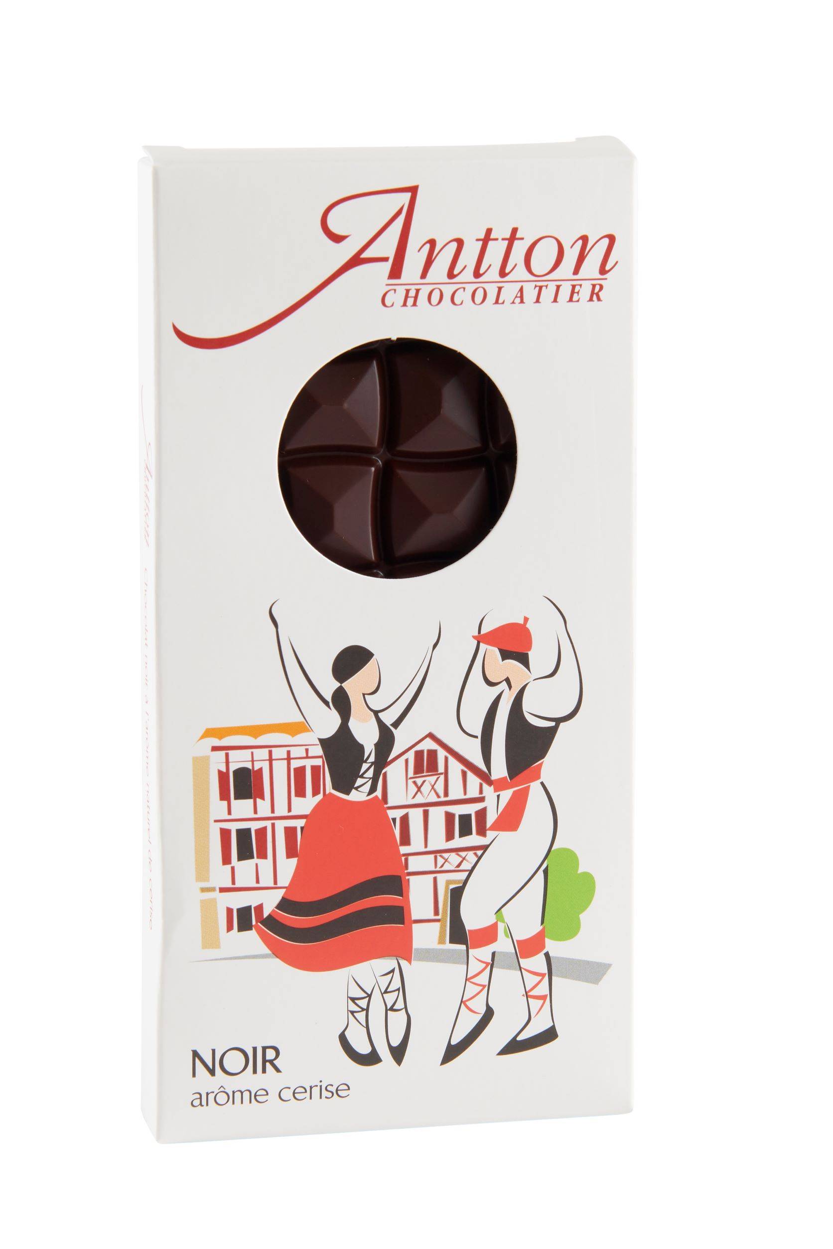 Pour célébrer cette association gourmande, Antton Chocolatier a dessiné ce joli étui blanc qui illustre la danse emblématique du Pays Basque. Admirez ces danseurs de Fandango, tout en élégance et en légèreté.